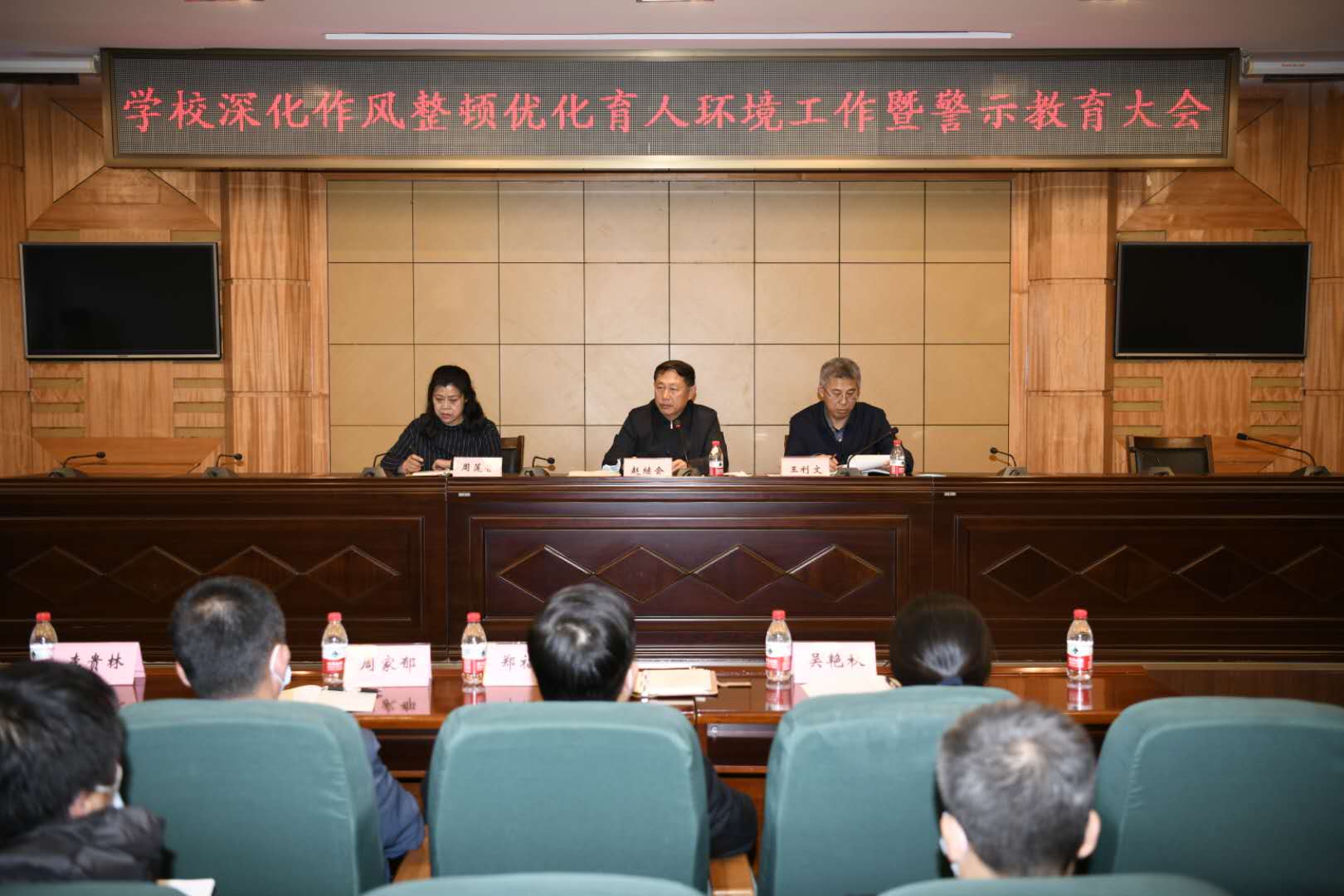 10月14日,为深入贯彻落实全省深化机关作风整顿优化营商环境工作暨警示教育会议精神,进一步巩固扩大贝博官网作风整顿成果,推动作风整顿优化育人环境向纵深发展,按照学校党委部署,学校召开深化作风整顿优化育人环境暨警示教育大会。学校领导、副处级以上干部出席会议。会议由学校校长王利文主持。