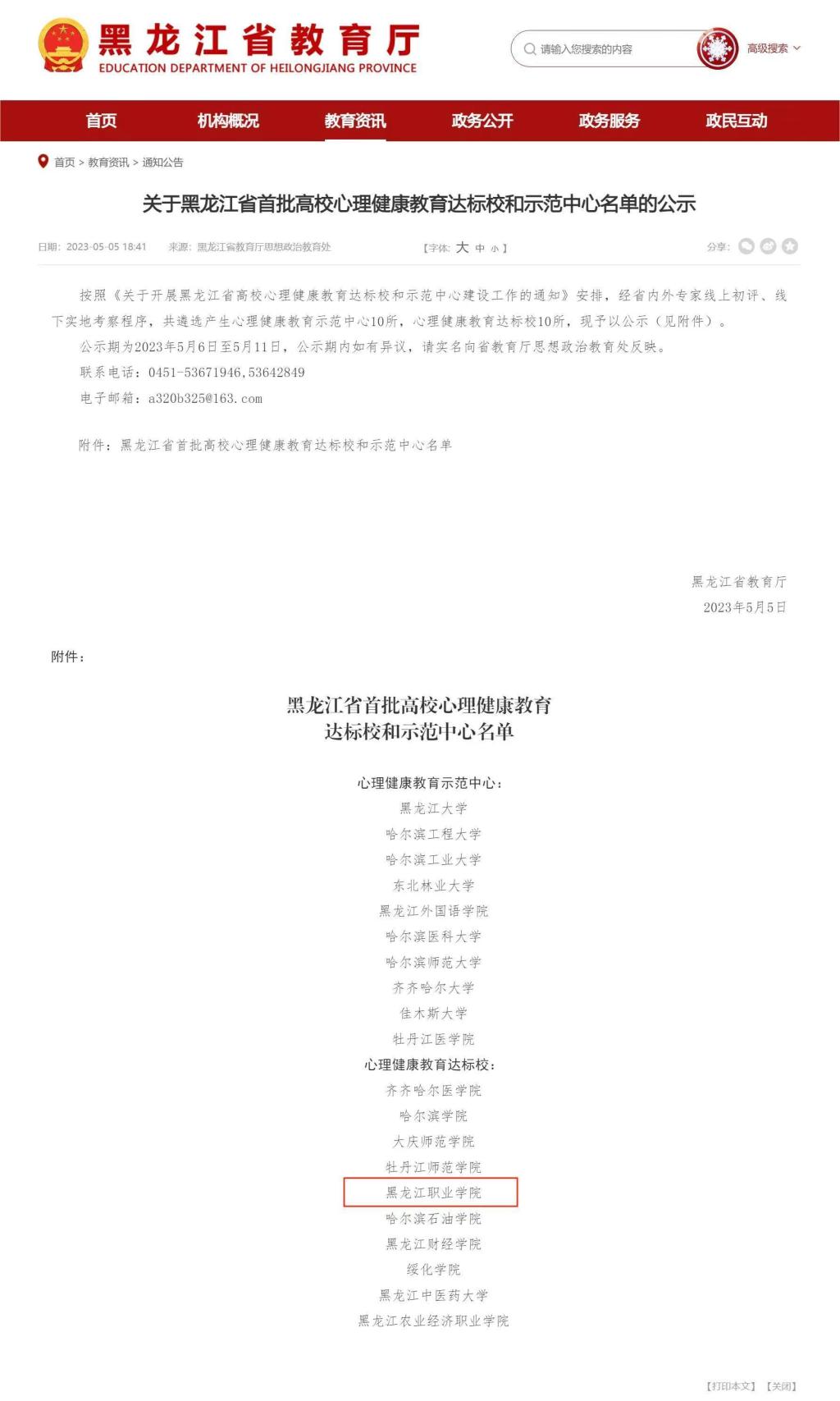 日前,黑龙江省首批高校心理健康教育达标校和示范中心名单公布,经省内外专家线上初评、线下实地考察程序,贝博官网获批“黑龙江省高校心理健康教育达标校”,位列全省高职院校第一名。