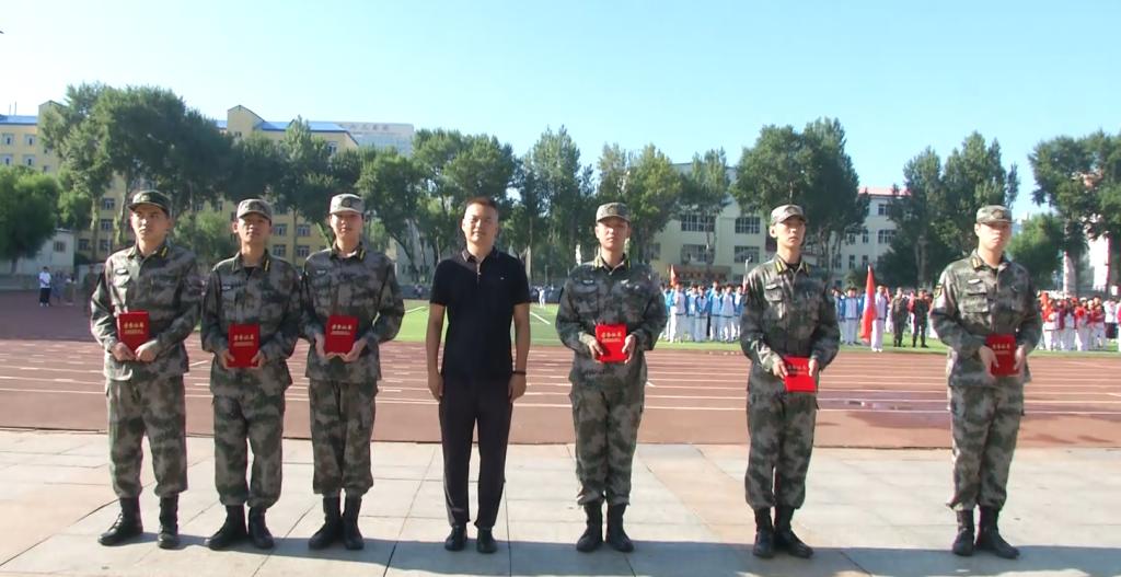 在庄严的升国旗仪式后,104个班级依次登场进行汇报表演。同学们昂首挺胸、步伐整齐、口号响亮,使整个校园焕发生机。此次共有30个班级获得“军操标兵班”,40名国旗护卫队队员被授予“特殊贡献奖”。
