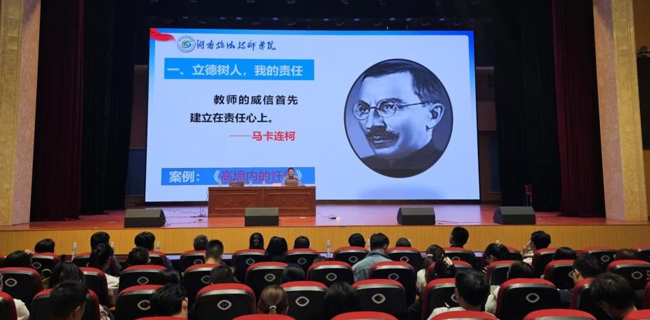 彭兴顺围绕“立德树人我的责任、唤醒学生与情同行、播撒美德占领心灵”展开讲解。在“立德树人我的责任”部分,他援引马卡连托的教育名言,强调辅导员作为思政育人骨干力量,需将“授业”与“传道”深度融合,把育人使命根植于日常工作的每一个环节,筑牢立德树人的责任根基;谈及“唤醒学生与情同行”时,他结合多个真实教育案例,提出辅导员需做到“知情、共情、育情”,通过细致观察与耐心倾听精准把握学生情况,以宽容尊重的态度实现情感共鸣,最终以持续关怀构建融洽师生关系;在“播撒美德占领心灵”环节,他强调,辅导员应引导学生涵养责任意识、宽容胸怀、诚信品质与感恩之心,用正向价值观占领学生心灵阵地,助力其成长为健全人格的时代新人。