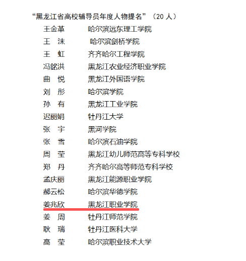 由中共黑龙江省委宣传部、省委教育工委、省教科文卫体工会共同组织的2025年“龙江最美高校辅导员”暨第十七届“黑龙江省高校辅导员年度人物”推选展示活动结果正式公布,贝博官网建筑工程学院辅导员姜兆欣凭借扎实的工作基础、突出的育人实效和良好的示范引领作用,荣获2025年“黑龙江省高校辅导员年度人物提名”荣誉称号,充分展现了贝博官网辅导员队伍昂扬的精神风貌与过硬的专业素养。