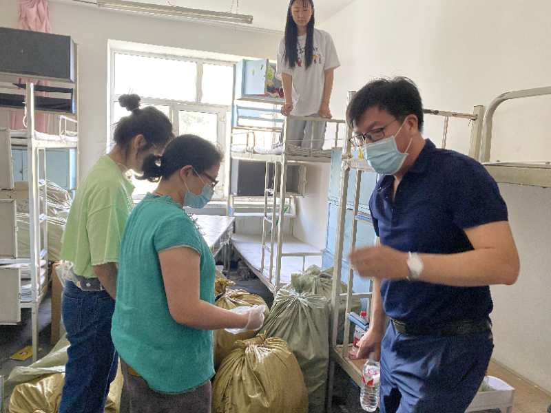 7月8日下午,待核酸检测所有参检人员均合格以后,搬运邮寄工作正式拉开帷幕。按照工作方案统一要求,各二级学院成立工作小组,教师、辅导员、学生志愿者各司其职,全力投入工作。