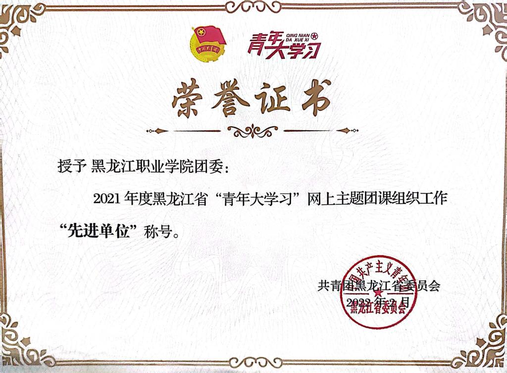⚪ BB贝博艾弗森官方网站团委荣获2021年度黑龙江省“青年大学习”网上团课组织工作“先进单位”荣誉称号;