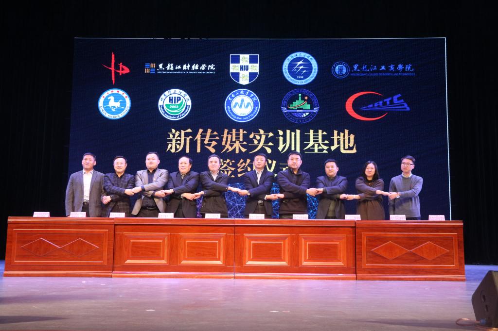 在颁奖典礼上,哈尔滨日报报业集团与贝博官网等冰城9所高校签订了“新传媒实训基地”合作协议。