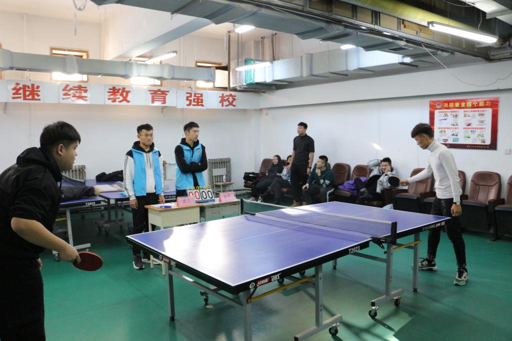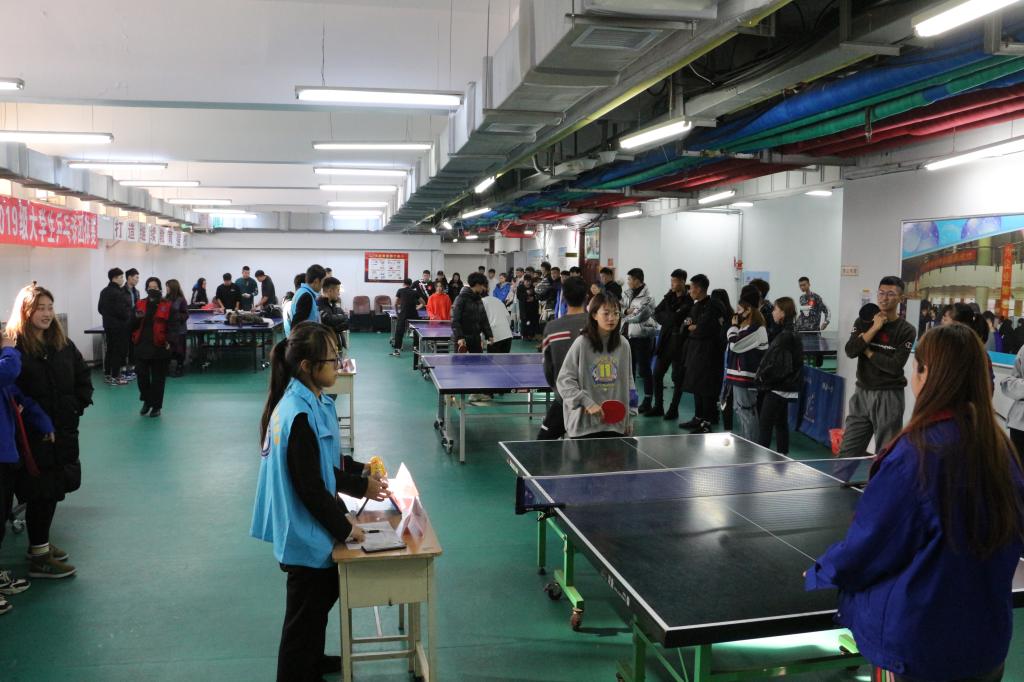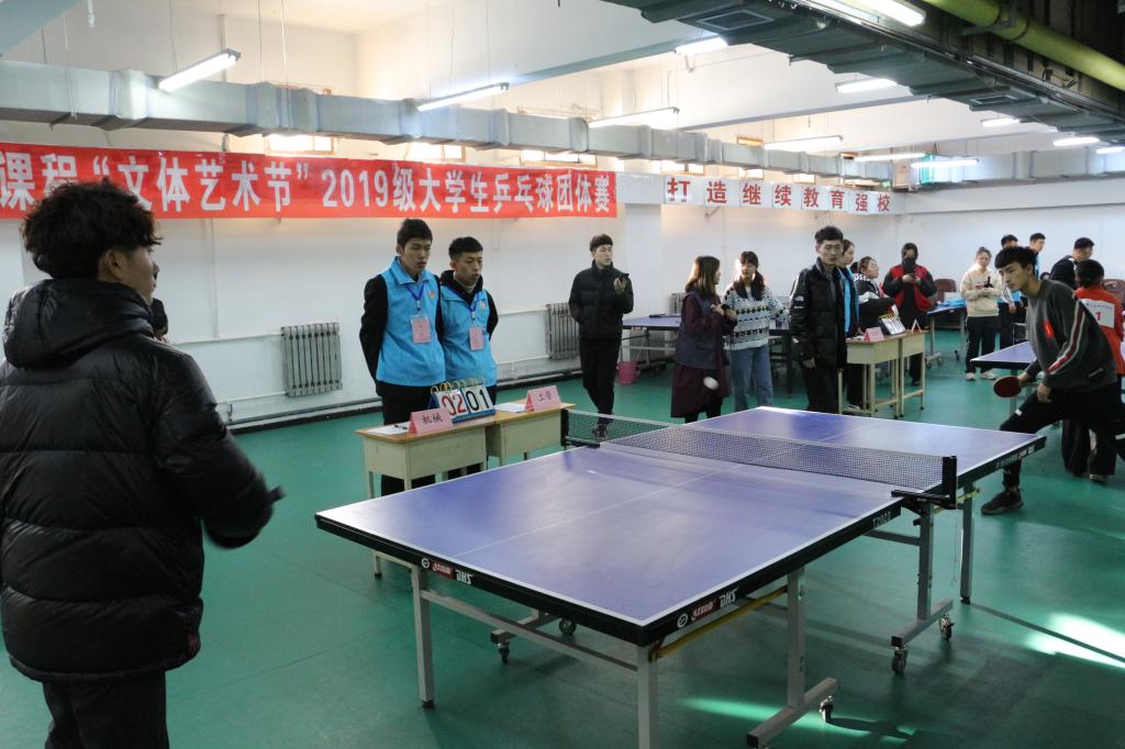 为响应团中央“走下网络、走出宿舍、走向操场”的号召,促进贝博官网学生积极参与体育运动,加强体育锻炼,在全校营造积极向上、健康活泼、文明有序的校园文化氛围。按照校团委“缤纷四节”活动课程的总体安排,由校团委主办、校学生会文体部承办的“文体艺术节”2019级大学生乒乓球团体赛历时5天时间于12月17日完成了全部赛程,圆满结束。