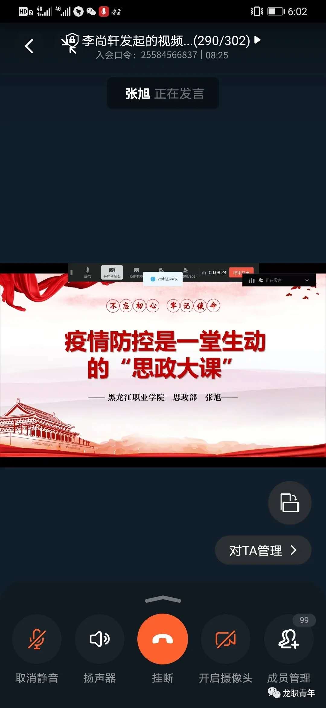 6月14日下午18:00时,第十四期“青年马克思主义者培养工程”暨大学生骨干培训班第二讲在“钉钉”平台上如期进行。本次讲座特邀贝博官网思政部德育教研室张旭老师为同学们作了题为《疫情防控是一堂生动的“思政大课”》的专题讲座,校团委书记邹春雷、副书记杜超、组宣办主任唐晓恬出席本次会议,来自校学生会、校社团联合会、校新媒中心、校纪管委、校军操委、校公寓委、校关心委、校综合委、校学信委、校伙食委以及各二级学院学生会共298名2019级主要团学干部学员参加了讲座。由团委学生副书记刘丽利主持