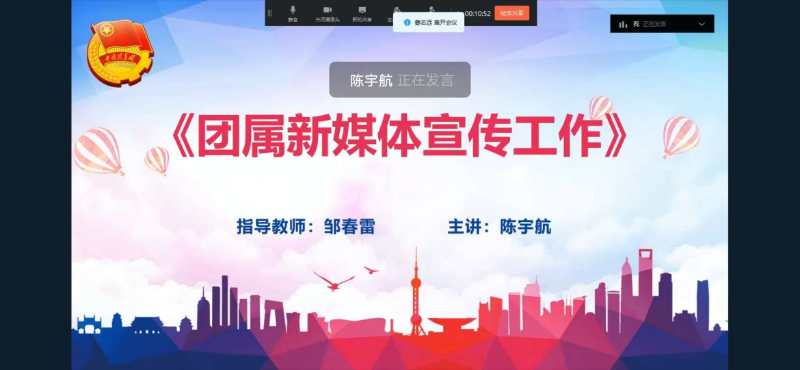 6月19日下午18:00时,第十四期“青年马克思主义者培养工程”暨大学生骨干培训班第七讲在“钉钉”平台上如期举行。本次讲座特邀贝博官网2018级校团委学生副书记陈宇航为同学们作出《团属新媒体宣传工作》专题讲座。298名青班学院聆听了本次讲座。校团委学生副书记李尚轩主持了讲座活动。
