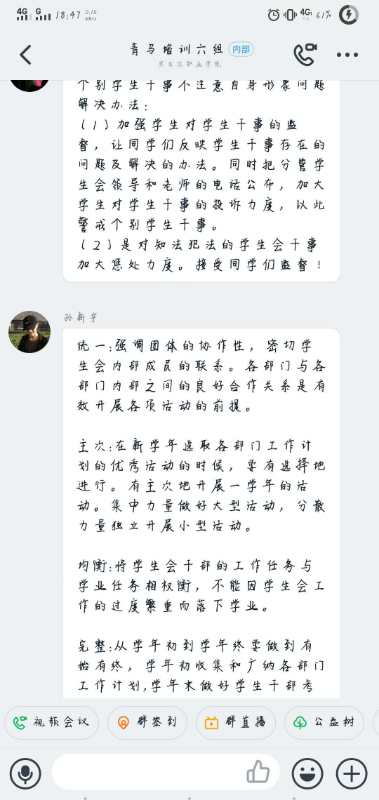 在小组讨论环节,同学们就“你认为贝博官网学生组织在工作和服务中存在哪些不足?应如何加以改进和完善?”进行争先恐后的发言。做好一名优秀负责的学生干部,无论在工作和服务中都应相互学习共同进步并不断改进和完善自己。
