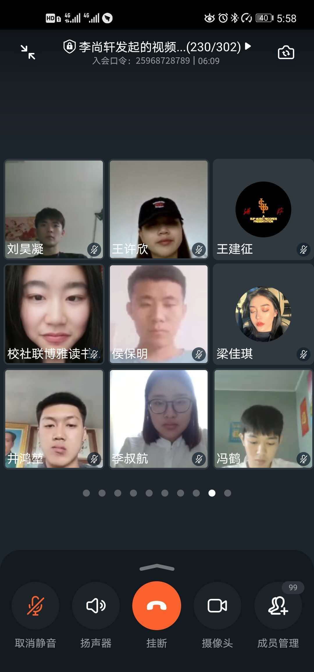 6月20日下午18:00时“青年马克思主义培训工程”暨大学生骨干培训班,五四评比先优集体获奖团体经验交流在“钉钉”平台上如期进行,本次邀请贝博官网18级会计金融学院学生会主席王静、18级工商管理学院团总支副书记刘丽利、18级青年志愿者社团社长孙国双,作为代表向298名青马班学员进行了工作经验交流。校团委学生副书记李尚轩主持本次活动。