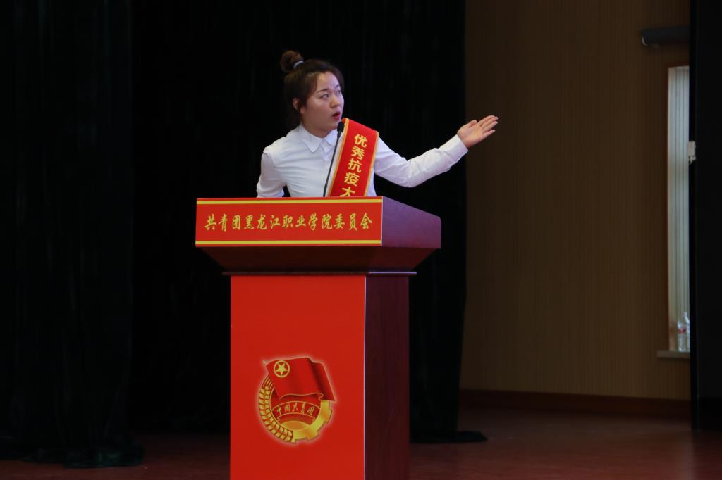 宣讲会上,来自机械工程学院赵延旭、马荣振,电气工程学院于佳琦、李君鹏,建筑工程学院吴宪、闵睿,工商管理学院刘聿涛、杨雨菲,会计金融学院许晶莹、付斌,旅游与人文艺术学院于闯、孟凡超12名优秀抗疫大学生志愿者分享了自己奋战在家乡新冠肺炎疫情防控“第一道防线”志愿服务工作的亲身经历和感人事迹,他们主动请战,自愿加入志愿者服务工作,在街道、在社区、在村口……,他们每日早起晚归在值班地点站岗,监督每日往返车辆群众百姓的健康码和体温情况,登记人员来往信息,挨家挨户分发抗疫急救物资和抗疫宣传手册……他们用无畏书写着无悔,用奉献撰写着诺言,用实际行动践行着“自强有为,兴业报国”的龙职精神,彰显着龙职青年的蓬勃力量,展现了“龙职人”责任与担当。