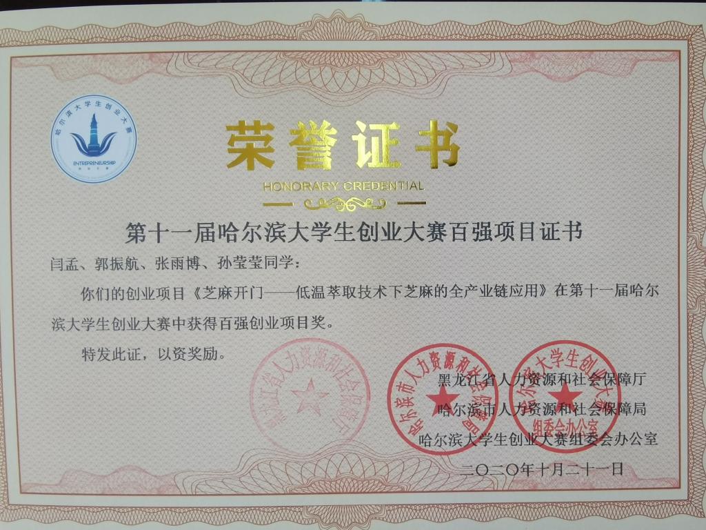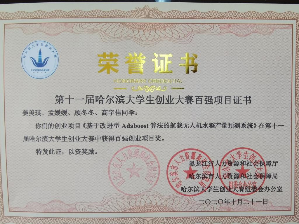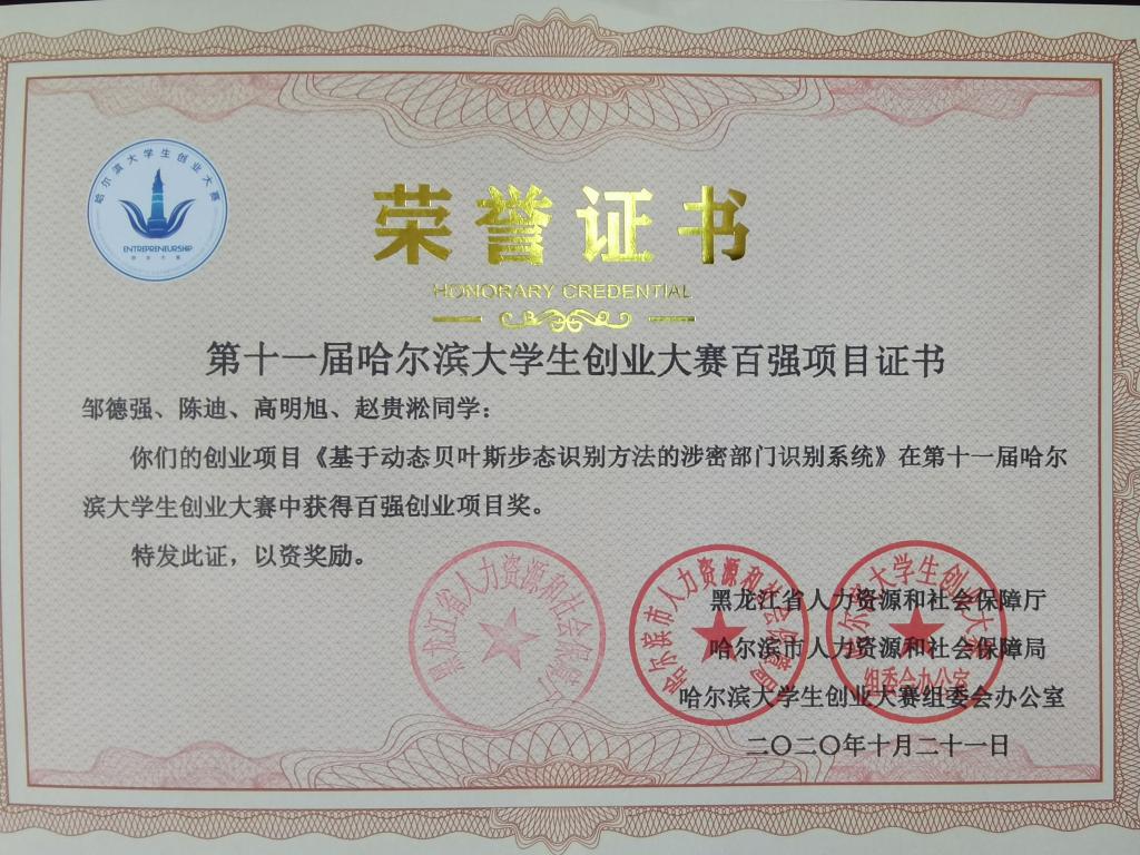 10月21日,以“创客当下,赢在未来”为主题,由黑龙江省人力资源和社会保障厅、哈尔滨市人力资源和社会保障局联合主办,哈尔滨市人才服务局承办的第十一届哈尔滨大学生创业大赛决赛圆满落幕。贝博官网与哈尔滨工业大学、黑龙江大学、东北农业大学、东北石油大学、哈尔滨理工大学、黑龙江中医药大学等20所高校获得了大赛“优秀组织奖单位”。贝博官网《芝麻开门——低温萃取技术下芝麻的全产为链应用》《基于改进型Adaboost算法的航载无人机水稻产量预测系统》《基于动态叶贝斯步态识别方法的涉密部门识别系统》三个创业项目荣获大赛“百强创业项目奖”称号。