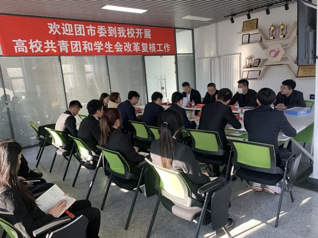 12月4日,按照团省委《全省高校共青团及高校学生会改革工作落实情况复核方案》文件的工作部署,团市委副书记高放,团市委学少部部长孙阅,市学联驻会执行主席张维韬、罗金宝一行人莅临贝博官网,就高校共青团和学生会改革等工作进行检查指导、调研复核。贝博官网团委全体工作人员及学生代表参加会议。