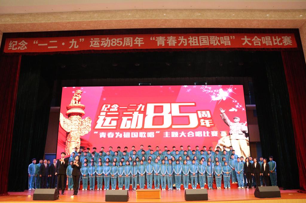 12月9日,为纪念“一二·九”爱国运动85周年,弘扬和传承“一二·九”爱国运动精神,增强学生的社会责任感和历史使命感,激发新时代大学生团结友爱、积极向上、自强不息、与时俱进的爱国情操,搭建具有浓郁爱国氛围的活动平台。学校举办以“青春为祖国歌唱”为主题的纪念“一二·九”85周年主题大合唱比赛。学校党委书记赵继会,党委副书记、校长王利文,党委副书记周家郁,副校长郑福贵,党委委员、组织部部长钟敏强出席活动并观看整场比赛。大赛邀请学校有关处室负责人和在哈尔滨兄弟高校团委书记等构成大赛评委团。各二级学院党总支书记、党总支副书记、团总支书记、辅导员及学生代表等近千人参加比赛。