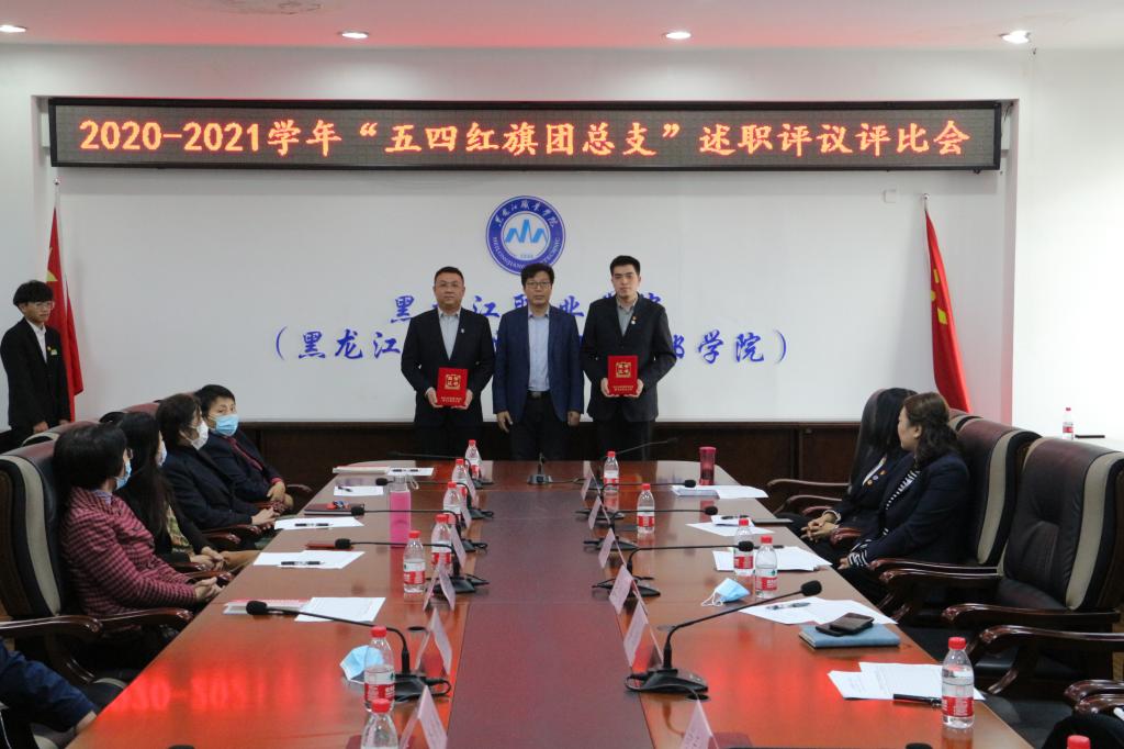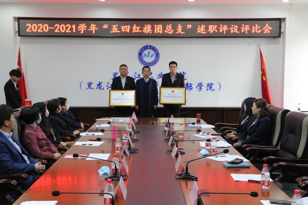 本次评比活动由“各学院青年大学习完成率(占20分)和各学院团总支书记个人述职(占80分)”两个部分构成,经过综合评比,系统全面地展示了贝博官网各分院团总支一年来在团员思想教育工作、”第二课堂成绩单“、社会实践志愿服务、”一心双环“队伍建设和创新创业教育等方面取得的工作成果。通过评审团认真评审,最终工商管理学院团总支、建筑工程学院团总支分别荣获2020-2021学年“五四红旗团总支”荣誉称号。与会领导向获奖单位和个人颁发荣誉奖牌和证书。
