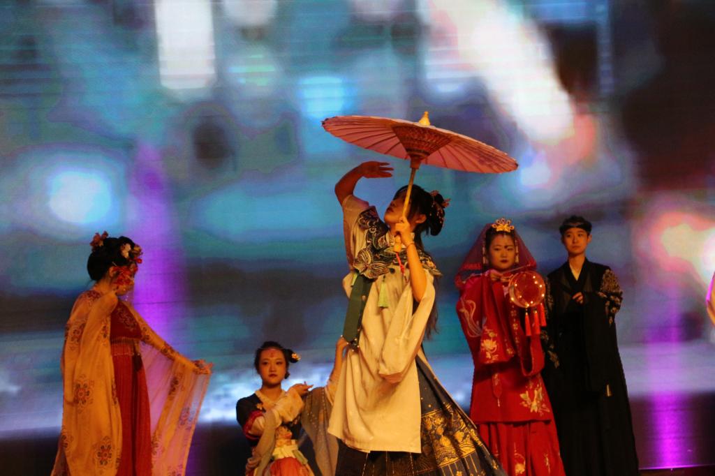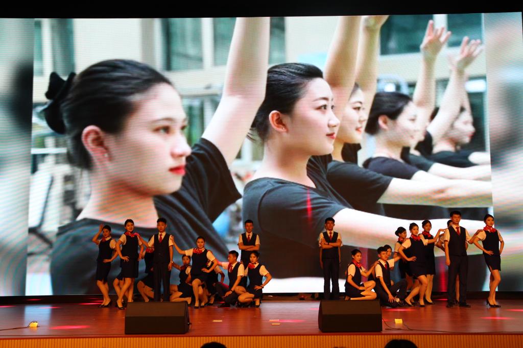 表彰大会过后,与会师生共同观看了2021年社团文化月“铭记党史荣耀·尽显社团风采”主题汇报演出。校大学生艺术团街舞队带来的舞蹈《燃》,拉开了整台演出的帷幕;华夏汉服社团选送的古风舞蹈,以独特的表演形式彰显了龙职学子对中华优秀传统文化的深厚情怀;校大学生公寓管理委员会带来的舞蹈《love me now》燃爆全场,旅游与人文艺术学院空乘专业社团带来的走秀《空中礼仪》,将晚会现场气氛不断推向高潮。