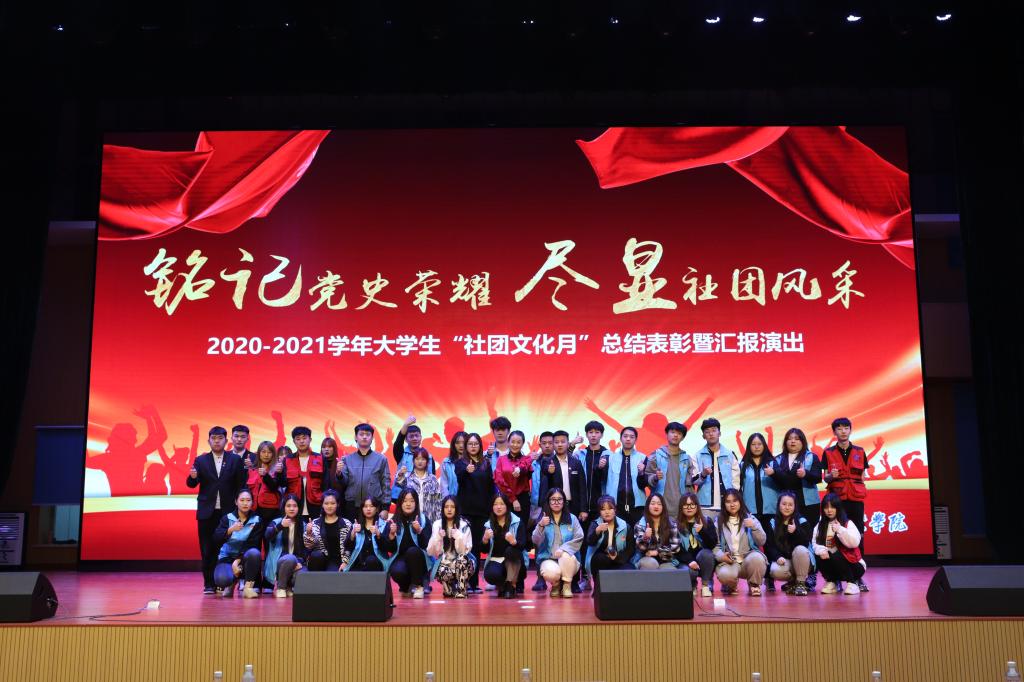 本届社团文化月从4月1--29日历时一个月,期间举办校级社团活动56项、院级社团活动57项,参加学生达2500余人。大会表彰奖励了161名社团文化月各赛项获奖个人。