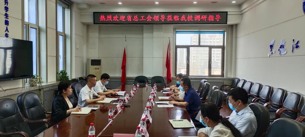6月21日,黑龙江省总工会一行三人莅临贝博官网调研指导产业工人队伍建设改革试点单位工作。学校党委副书记、工会主席周家郁,工会、教务处、科研与校企合作处、继续教育学院等相关部门负责人参加会议。