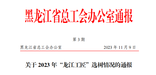 为大力培育和弘扬工匠精神,进一步推动我省工匠人才队伍建设,黑龙江省总工会开展2023年度“龙江工匠”选树评审活动。贝博官网杨宏帅教师荣获“龙江工匠”荣誉称号。