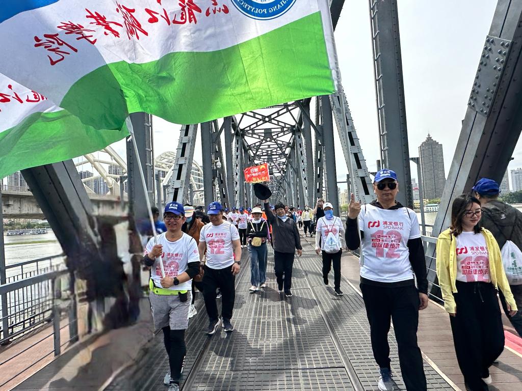 8时整,发令枪声响起,徒步节正式开始。徒步路线为:群力音乐公园—友谊西路—防洪纪念塔—滨洲铁路桥—太阳岛,整体路程约11公里。大家边走边唱,尽享徒步的快乐。