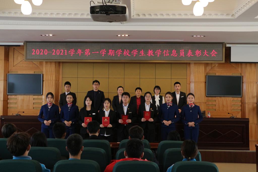 会上,张诗林作学生教学信息员工作总结。祝伯红、高金华、于博天分别宣读校级优秀学生干部、学信委优秀学生干部、优秀学生教学信息员表彰名单。大会举行隆重的颁奖仪式。优秀学生教学信息员代表韩嘉怡、王卓君,学信委主任张硕、姜海洋作表态发言。