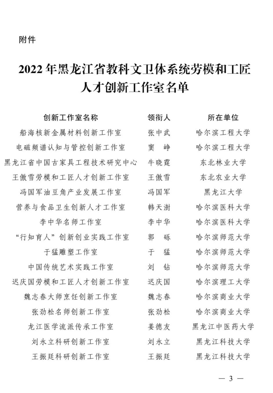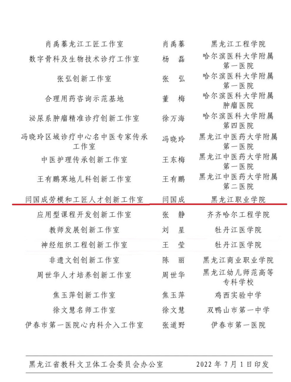 2022年度黑龙江省教科文卫体系统“劳模和工匠人才创新工作室”评审工作圆满完成,贝博官网“闫国成劳模和工匠人才创新工作室”名列其中。