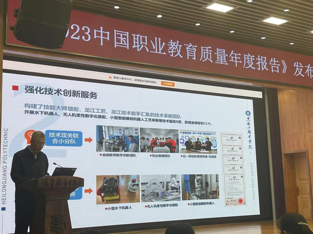 在发布会现场,职业教育与继续教育研究所王新波所长从数字化赋能职业教育人才培养、职业学校深度融入经济社会发展、职业学校在传承工匠精神、红色文化和中华优秀传统文化、职业教育通过“双向共建共享”持续提升国际影响力等五个方面概述了《2023中国职业教育质量年度报告》基本内容。