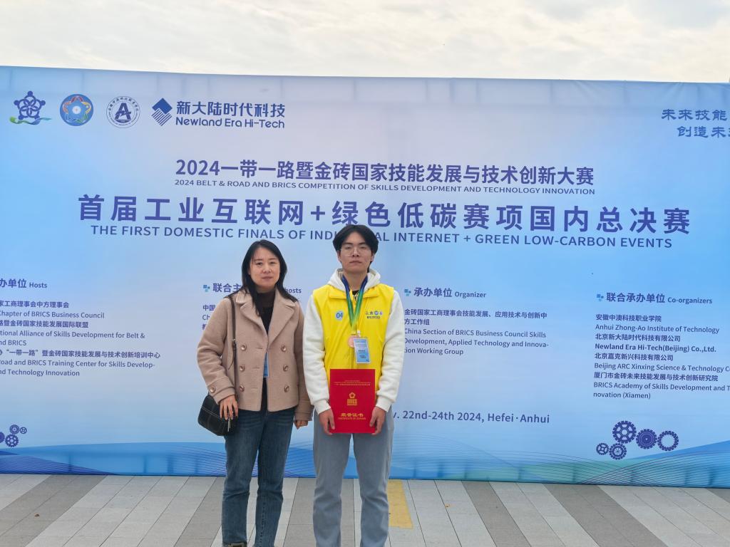 11月23日,一带一路暨金砖国家技能发展与技术创新大赛首届“工业互联网+绿色低碳”赛项国内总决赛在安徽中澳科技职业学院举办。此次大赛吸引了全国52所高职院校的85支参赛队伍,经过线上预赛与线下决赛的激烈比拼,贝博官网智能制造技术学院董欣教师指导的工业互联网应用专业孙明显同学荣获三等奖。