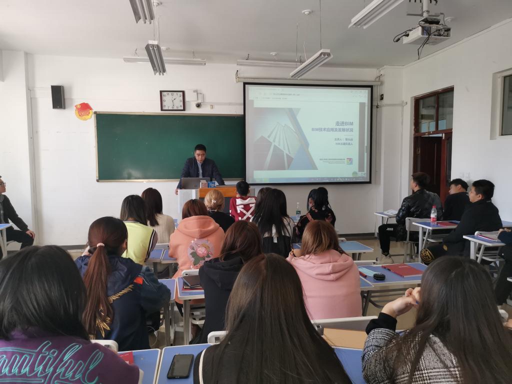建设项目信息化管理团队邀请黑龙江筑友BIM技术咨询公司经理李佳宁和项目负责人敬从远做专业介绍。李佳宁作为专家,结合公司多年的发展经验对BIM行业的发展前景向同学们做交流式讲解,最后又结合自身多年职业发展经历为学生提供中肯的职业规划和人生规划。筑友公司项目负责人敬从远结合实际工程中应用到的BIM技术和软件动画给同学们做了详细的专业内容介绍。