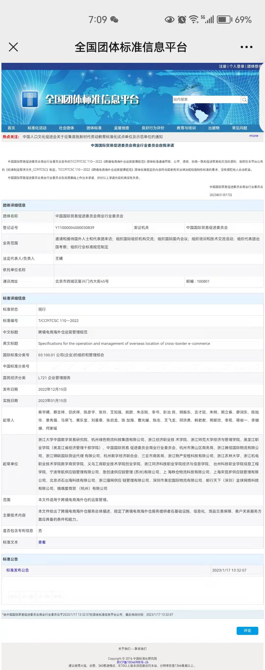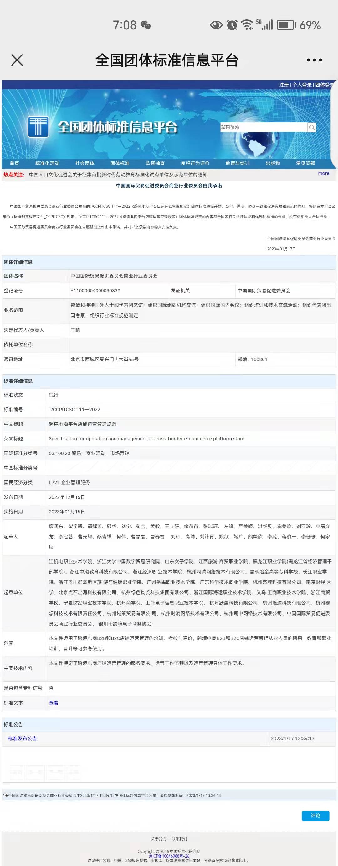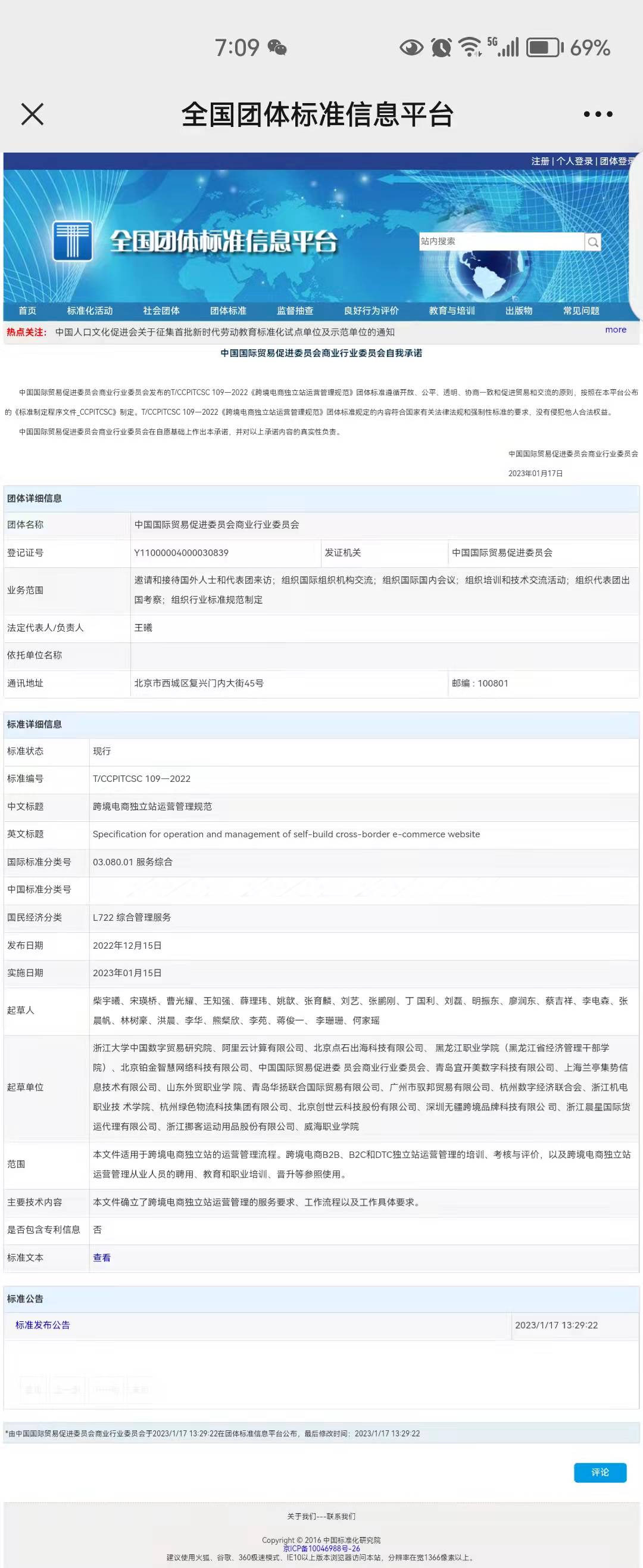 1月17日,贝博官网参与起草的“跨境电商新业态新模式运营管理规范”系列三项国家团体标准《跨境电商独立站运营管理规范》(T/CCPITCSC 109—2022)、《跨境电商海外仓运营管理规范》(T/CCPITCSC 110—2022)、《跨境电商平台店铺运营管理规范》(T/CCPITCSC 111—2022)在全国团体标准信息平台(http://www.ttbz.org.cn/)正式发布。本次发布的国家团体标准项目由浙江大学中国数字贸易研究院牵头制定,中国国际贸易促进委员会商业行业委员会立项管理。