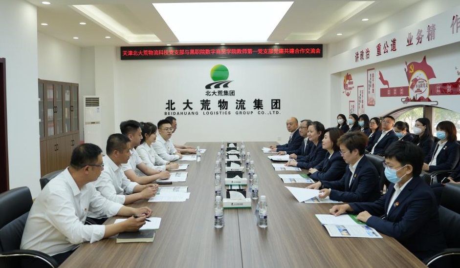 为认真贯彻落实党的二十大精神,创新基层党建工作载体,提高基层党建工作水平,进一步优化组织生活、丰富活动内容,5月26日,数字商贸学院组织教师赴北大荒物流集团与天津北大荒物流科技党支部联合开展党建共建活动。数字商贸学院党总支书记张玲、副院长刘宁、教学负责人胡云峰,北大荒物流集团副书记、纪委书记李美姝,北大荒物流集团副总经理、天津北大荒物流科技董事长张铭浩参加活动。