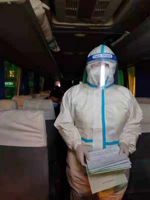 11月6日晚七点,陈京京接到接隔离酒店学生返校的任务,仅用20分钟的时间就从家赶到学校,与学校调配车辆一同前往隔离酒店,成功接11名隔离学生安全返校。在去隔离酒店的路上,陈老师接到校内辅导员电话,需要为校内一名学生带药。由于学生特殊指定了药品,她跑了三家药店才买到并连夜将药交给了学生。