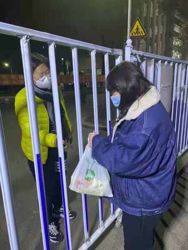 11月2日下午1点接到运送补给给隔离学生的任务后,她带着孩子迅速从家出发赶到学生隔离酒店和几位老师一起为学生分装补给食品。孩子困了就自己睡在车里,孩子醒了就带着孩子一起在酒店门口的广场上打包食品。同行教师怕孩子冻着让她带孩子回车里,她却说:“来就是干活儿的,正好让孩子给咱们看看堆儿。”就这样,陈京京和同行老师配合,用了一下午时间将补给食物送进学生隔离酒店。