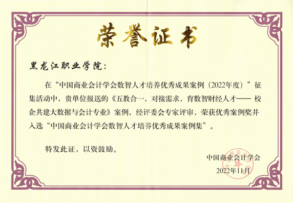 近日,中国商业会计学会数智人才培养优秀成果案例(2022年度)评审活动结束,贝博官网会计金融学院报送的教学案例《五教合一,对接需求,育数智财经人才——校企共建大数据与会计专业》荣获优秀成果案例奖,并入选“中国商业会计学会数智人才培养优秀成果案例集”。