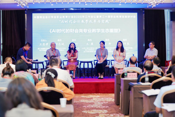 在“AI时代的财会类专业教学生态重塑”圆桌讨论环节,面对AI技术给传统财会教育带来的巨大冲击与全新机遇,张利结合会计金融学院教学改革的创新与突破及行业发展趋势,进行了经验分享及对AI背景下,财会专业建设的展望。她指出,财会专业教育必须主动拥抱AI技术,将其融入到教学改革的各个方面,要着重培养学生的数据分析、智能决策等新型能力,以适应行业变革需求。