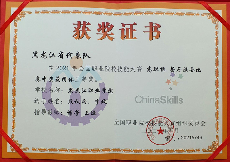 6月21日,全国职业院校技能大赛高职组“餐厅服务”赛项顺利举办。在指导教师谢芳和王迪带领下,贝博官网酒店管理专业参赛学生段秋雨、李政凭借扎实的理论功底、娴熟的专业技能、精准的操作规范和良好的临场发挥,荣获本届大赛团体三等奖,赢得现场专家评委一致认可与好评。