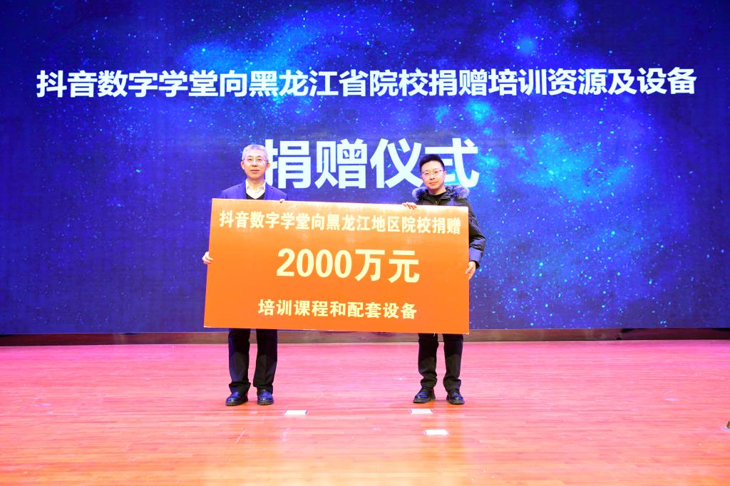 12月18日,抖音数字学堂联合火山引擎向黑龙江省院校捐赠仪式在贝博官网举行,抖音数字学堂联合火山引擎共捐赠价值2000万元培训资源及直播设备。黑龙江省教育厅职成处、市文旅局、省旅游产业发展促进会相关领导出席仪式,校长王利文及省内二十余所高校代表参加会议。