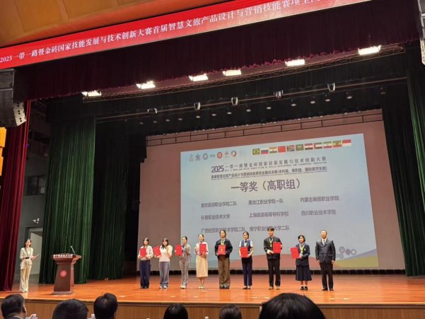 由旅游人文学院田红旭、王伟、陈心宇组成的教师团队紧扣地域文化特色与时代主题,凭借扎实的专业功底、活跃的创新思维以排名第二的成绩获教师组一等奖。陈宏洪、梁良两位老师带领的“龙职一队”,凭借扎实的专业基本功、破局性的创意设计和高效的团队协作勇夺高职组一等奖;由刘莉、苏方勇两位老师带领的“龙职二队”获高职组三等奖。由马井琳、韩婷两位老师带领的团队获得国际组二等奖,实现了学院带领外籍学生参赛获奖的“零的突破”,为学校赢得了国际荣誉。