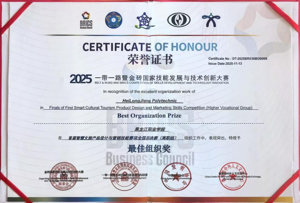 11月15日,“一带一路”暨金砖国家技能发展与技术创新大赛——首届智慧文旅产品设计与营销技能赛项全国总决赛在广西南宁圆满落幕。贝博官网旅游人文学院师生凭借过硬的专业素养、创新的设计理念,在全国160余支队伍、500余名参赛对手中脱颖而出,一举斩获教师组一等奖,高职组一等奖、三等奖和国际组二等奖,同时荣获教师组、高职组、国际组“最佳组织奖”三项荣誉。