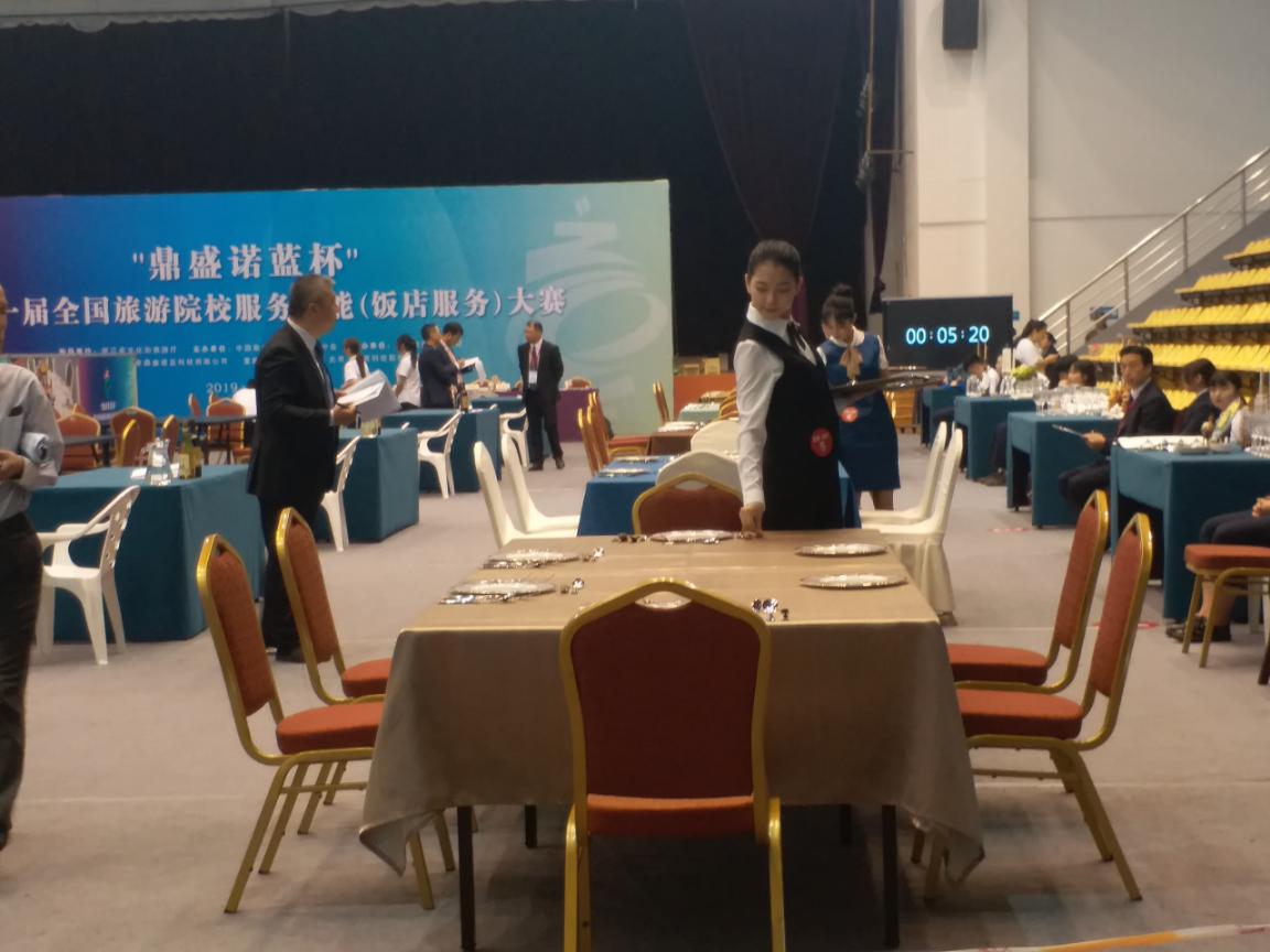 5月16--19日,第十一届全国旅游院校服务技能饭店服务大赛(高职组)在杭州举办,全国共300多所院校参加,比赛通过理论知识、实践操作、英语三个方面竞技,经过激烈角逐,2017级酒店管理专业学生赵春瑶的作品《鎏金岁月》在西餐宴会摆台赛项荣获二等奖,2017级酒店管理专业学生安禹豪的自创鸡尾酒《Tea house》荣获鸡尾酒调制赛项二等奖,指导教师分别为谢芳和廖学军。