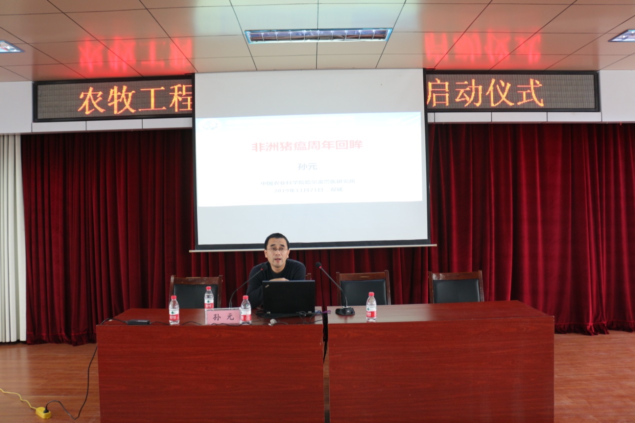 在启动仪式上,哈尔滨兽医研究所孙元研究员作题为《非洲猪瘟周年回眸》的专题学术报告,为农牧工程学院师生提供了一场学术盛宴。这场报告也是农牧工程学院“农牧企业百家讲坛”的第一场报告,200余名教师和学生参加报告会。