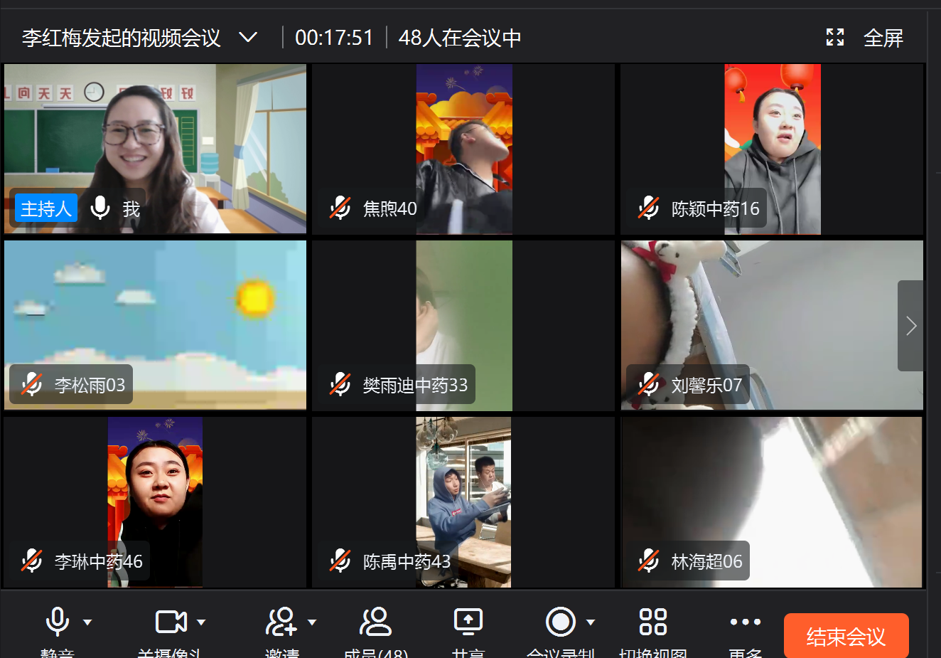 为引导教育学生提升疫情防控主人翁意识的号召,筑牢学生诚信意识,为疫情防控助力。11月4日,学校食品药品学院中药制药2101班通过钉钉视频召开线上“诚信防疫,你我同在”主题班会。