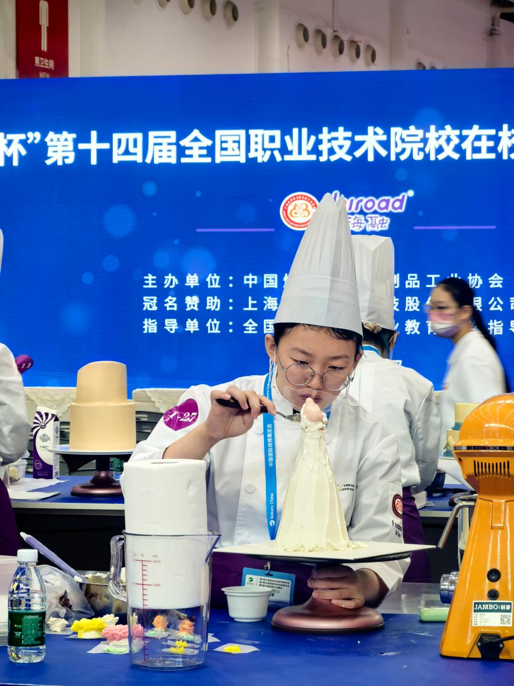 大赛响应技能强国的号召,旨在鼓励更多热爱烘焙的年轻人投身烘焙事业,提升中国烘焙的创新力,助力烘焙大国成为烘焙强国。本届赛事吸引全国百余所高职院校参加初赛选拔,经资深大赛评委严格筛选,共有49所职业院校90名选手进入决赛,同台竞技,抽签决定比赛场次,在开放式的赛场、规定的时间内完成作品,极大地考验了学生的心理素质和职业技能。大赛决赛评委均来自行业或企业的全国资深烘培技术能手,具有丰富的世赛或国赛考评经验,裁判长由大国工匠干文化担任。评委们从专业操作技法、卫生要求、作品设计等方面考量,对制作过程及作品呈现进行综合评分。