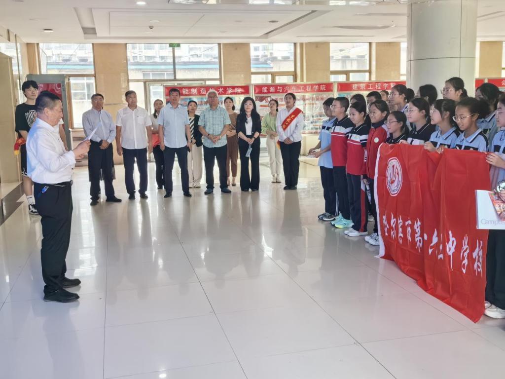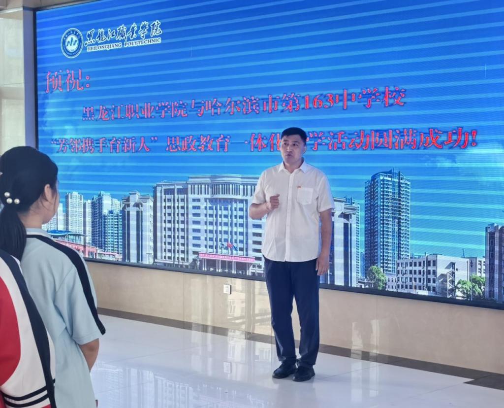 BB贝博艾弗森官方网站党委委员、副校长何志鹏出席活动并致辞。他对哈尔滨163中学同学的到来表示欢迎,向同学们介绍了BB贝博艾弗森官方网站突显工、农、商的办学特色,以及“打造支撑振兴的龙头高职”的使命任务,回顾了学校的光辉历史和立足龙江“五色”的发展现状。科学技术关乎国家未来,关乎人才培养方向,同学们要开眼界,长见识,早日成为国家栋梁之才。希望通过两校“合作”发挥“合力”,实现多元化的学习体验,促进理论与实践相结合,推动思想政治教育创新发展,培养新时代青少年的爱国情怀和责任意识。