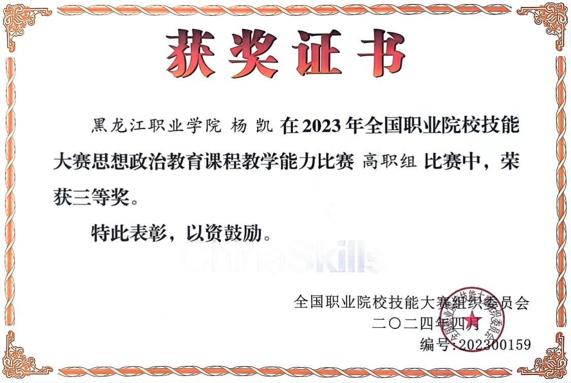 在2023年全国职业院校技能大赛思想政治教育课程教学能力比赛中,贝博官网马克思主义学院教师杨凯荣获高职组三等奖,这是贝博官网在该项赛事中思想政治教育课程教学领域首次获奖。