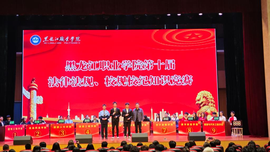 本次活动以宪法教育、校规校纪教育、法制安全教育为重点,坚持学用结合的原则,通过线上+线下的方式,全面开展法津法规、校规校纪教育工作。竞赛首次启动线上全员答题模式,全校共4169名2024级学生参加答题,各二级学院遴选出1名辅导员和2名学生组成代表队参加校级竞赛。参赛选手精神饱满、斗志昂扬、积极踊跃,精彩表现赢得了现场观众的阵阵掌声。经过紧张激烈角逐,最终,会计金融学院代表队荣获一等奖。