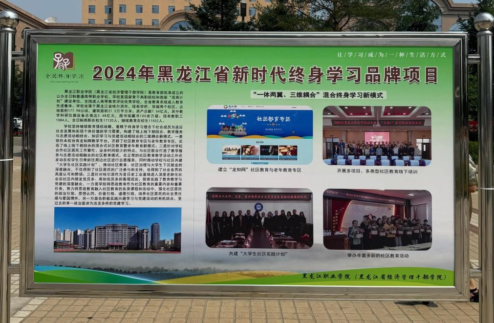 开幕式上,25位黑龙江省新时代“百姓学习之星”、24个新时代“终身学习品牌项目”受到表彰。贝博官网报送的《“一体两翼、三维耦合”混合终身学习新模式》被评为2024年新时代“终身学习品牌项目”,是省内唯一获奖高校。贝博官网作为参展单位,以展板形式图文并茂地呈现近几年社区教育和老年教育取得的成果,践行了建设学习型社会的光荣使命。
