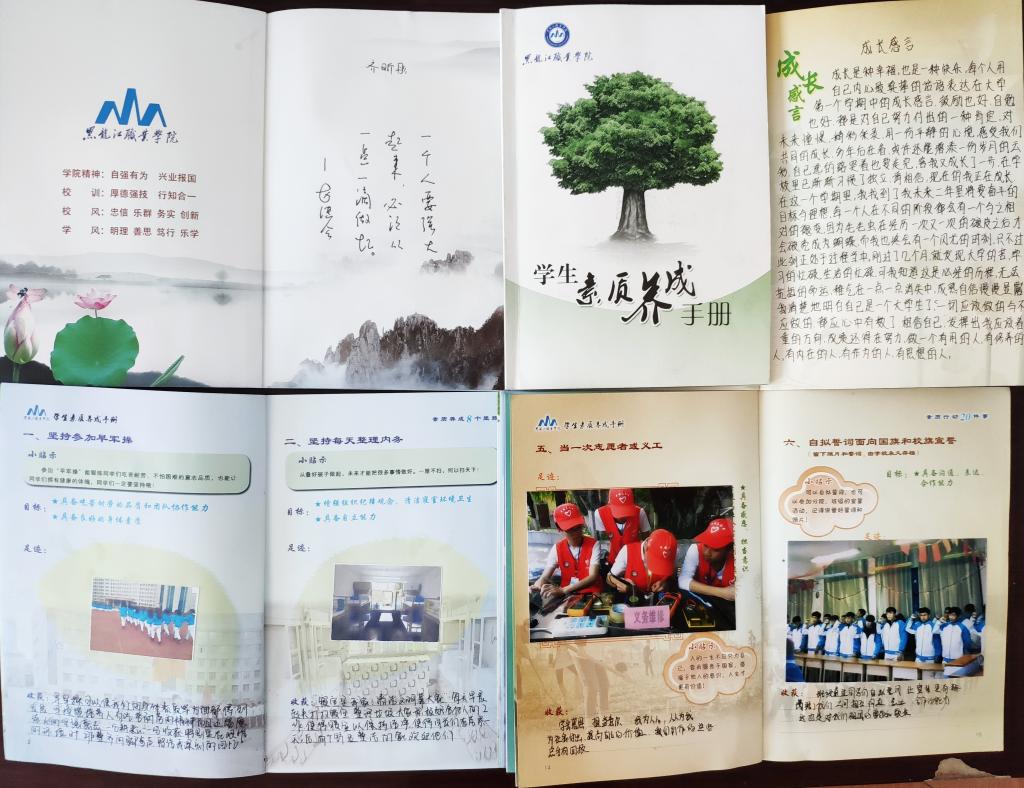 围绕素质养成八个坚持,学校加强公寓标准化教育管理,将坚持开展16年的早军操、晚自习经典诵读等活动开发为必修活动课程;结合素质行动20件小事,将文明礼貌礼仪巡演、职业生涯规划大赛、步入职场宣誓、难忘我的大学、敬业访谈等活动开发为选修活动课程;二级学院结合专业特点开发“一院一品”特色专业类活动课程54门,构建了“大一素质年,大二专业年,大三就业年”贯穿学生三年学程的“精彩四季、缤纷四节、三赛三动”活动课程体系,形成素质养成教育品牌矩阵。每年开学典礼上学生们认真聆听师长的谆谆教诲;每天清晨同学们迈着矫健的脚步唱响“自强有为,兴业报国”的“龙职”声音;每堂晚自习学生们在《国学自强读本》的朗朗书声中坚定传承中华文化、做好民族复兴铺路石的理想信念。一张张热情笑脸、一句句暖心问候、一声声嘹亮口号、一列列整齐方阵、一阵阵朗朗读书声、一套套整洁被褥,成为“龙职”学子素质提升的标志和特有的文化符号。