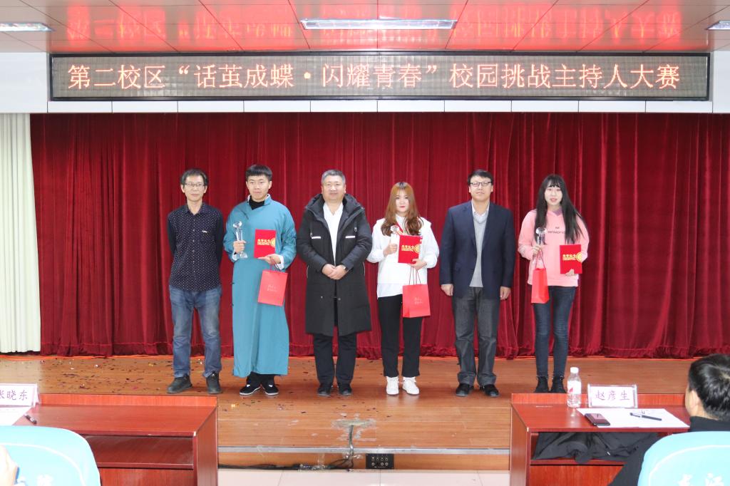 11月27日,由BB贝博艾弗森官方网站第二校区学工部主办,校新媒体中心承办的“话茧成蝶,闪耀青春”挑战主持人大赛成功举行。学工部副部长赵彦生、各二级学院学工副院长、团总支书记参加活动,大赛邀请具有专长的教师、犸林文化有限公司代表共计7人组成评委团,与240余名观众共同欣赏了选手们的精彩表现。