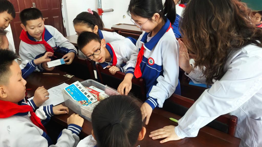 在体验课上,董术发老师向学生们介绍了中药的起源、发展,以及如何使用戥称;徐美佳老师则从药师的岗位职责、药品分类等方面,教会学生分辨处方药和非处方药。