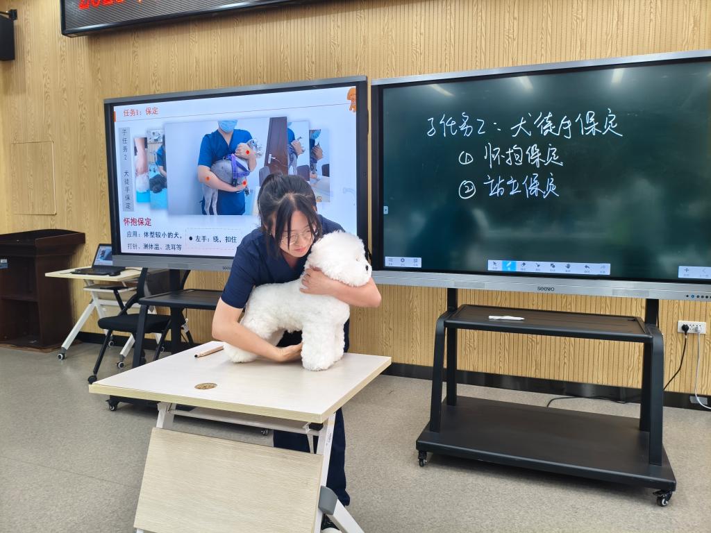 ▲动物外科手术课程团队教师胡静进行课堂实操展示